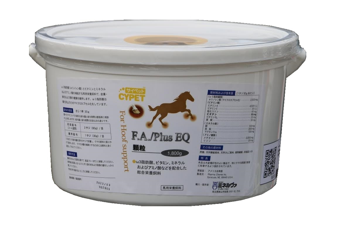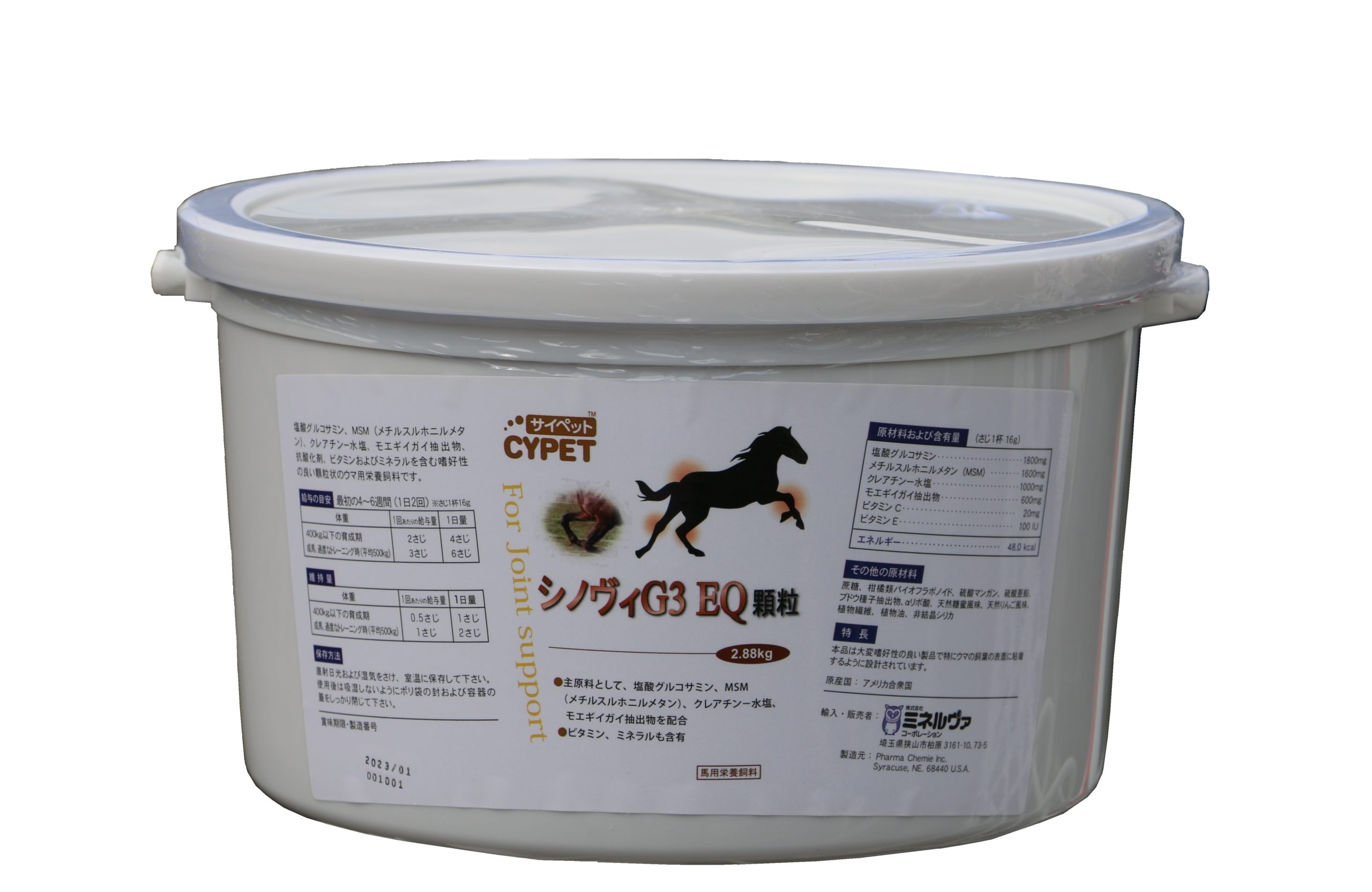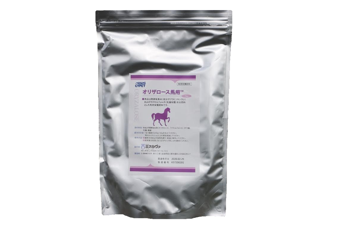 オリザロース(馬用)発酵紫黒米が持つ、さまざまな機能性成分が馬の健康維持をサポート。商品の詳細シノヴィ G3 EQ顆粒(馬用)関節の健康を維持し、理想的な栄養を与えるウマの栄養飼料!商品の詳細F.A./Plus EQ 顆粒(馬用)皮膚・被毛および蹄の健康維持に。商品の詳細Acid Ease(アシッドイーズ)馬用馬の胃腸の健康維持に。商品の詳細Fifteen Plus(フィフティーンプラス)馬用すべての高齢馬のために。商品の詳細