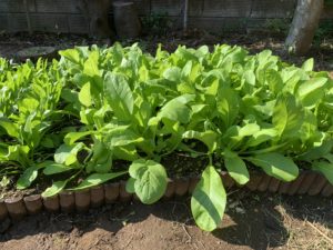 春菊とサラダに入れるミックス葉みたいなのが売ってたのでそれを植えています。小松菜はだいぶもじゃもじゃしてきました。