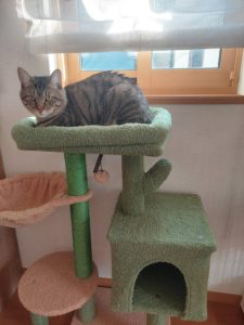 奥さんは常日頃から2階のリビングから外を見る小太郎の場所を整えるため、キャットタワーを購入!